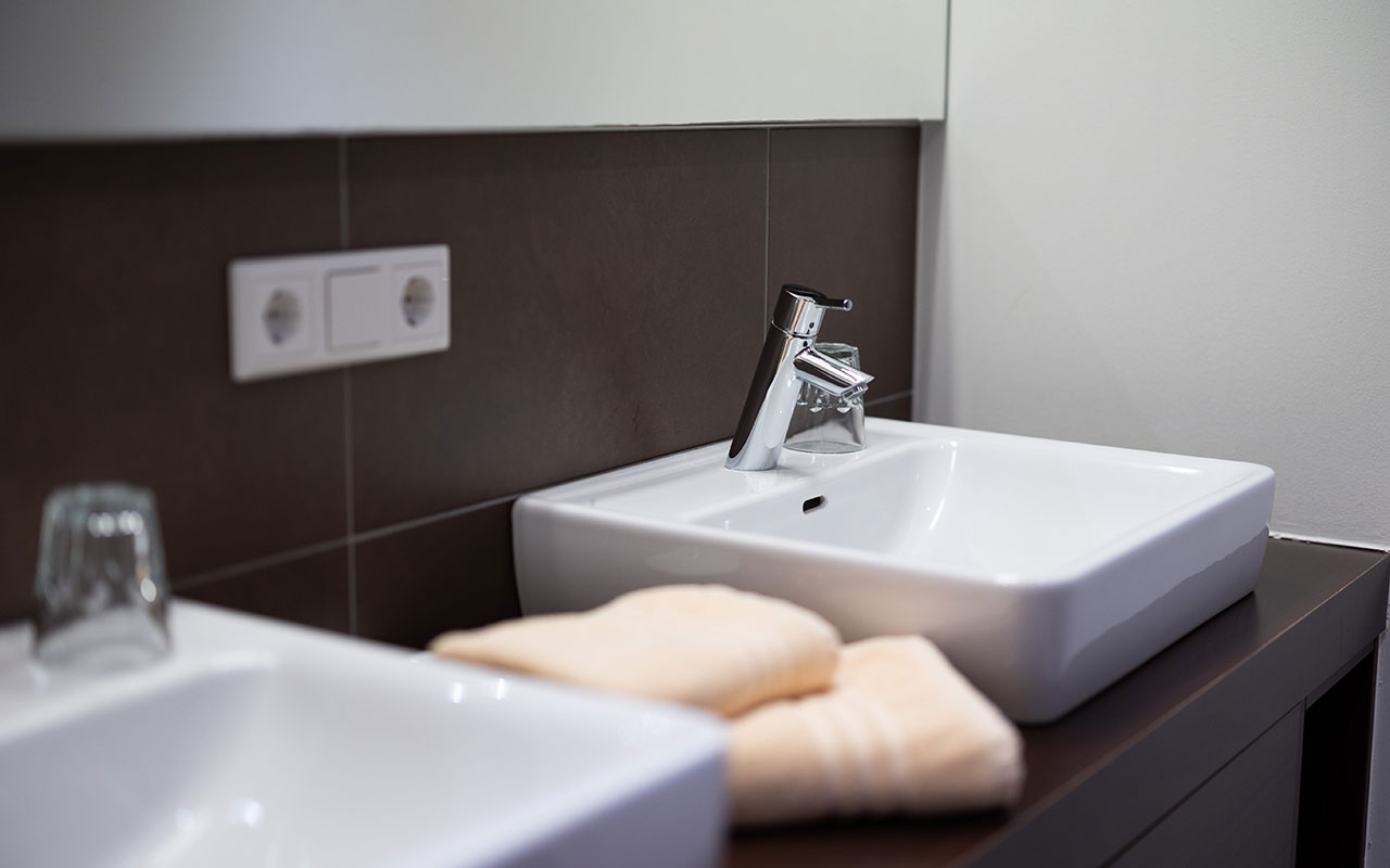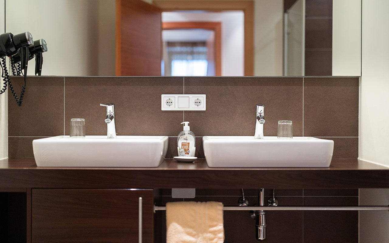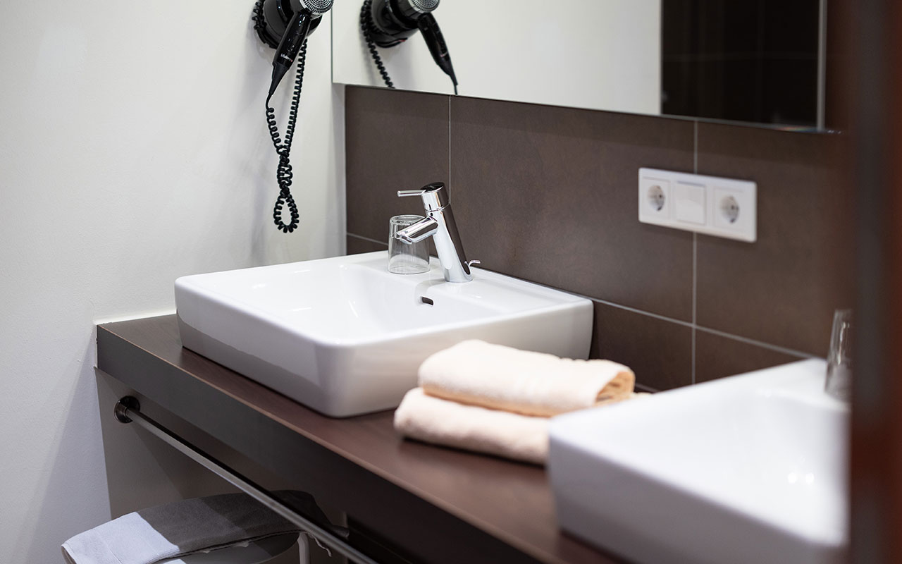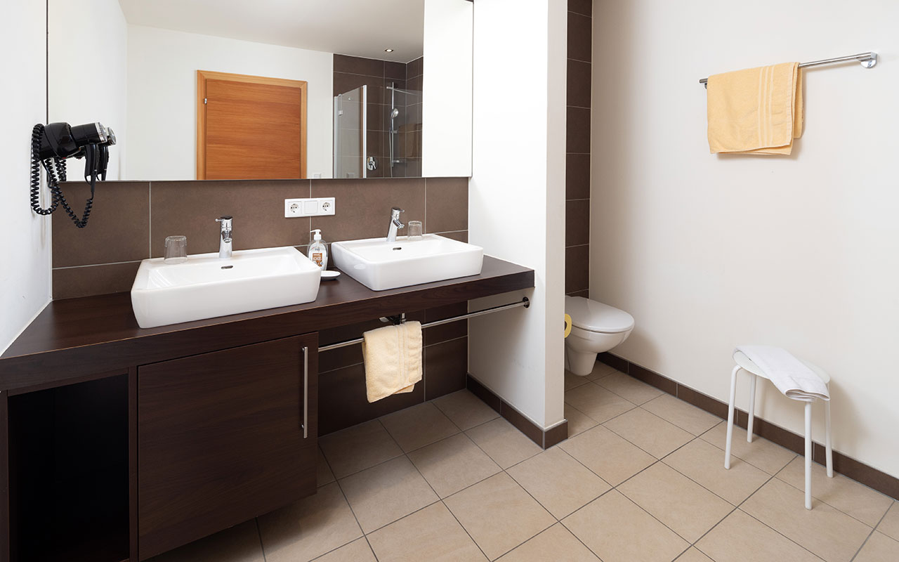 Bad mit Dusche, Haartrockner, WC teilweise separat
