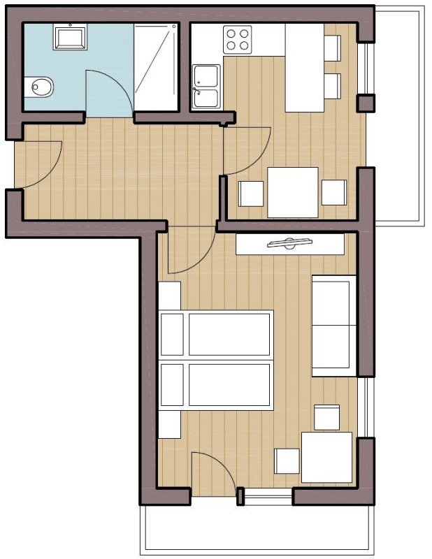 Die Nr. 5 Baumgartgeier ist unser Bestseller für 2 Personen. Unser kleinstes Appartement befindet sich im 2. Stock und ist ideal für Paare. Es stehen Ihnen 2 Balkone zur Verfügung: ein ostseitiger und einer in Richtung Süden.