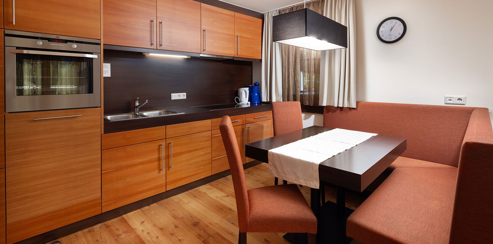 In unseren großzügigen Executive Ferienwohnungen finden Sie Wohnkomfort auf ca. 75 m². Es wurden ausschließlich allergenarme und biologische Materialien verwendet. Diese Ferienwohnungen sind für Allergiker besonders geeignet, die Ferienwohnung Sonnwendkogel (Nr. 14) ist zudem auch behindertengerecht eingerichtet.